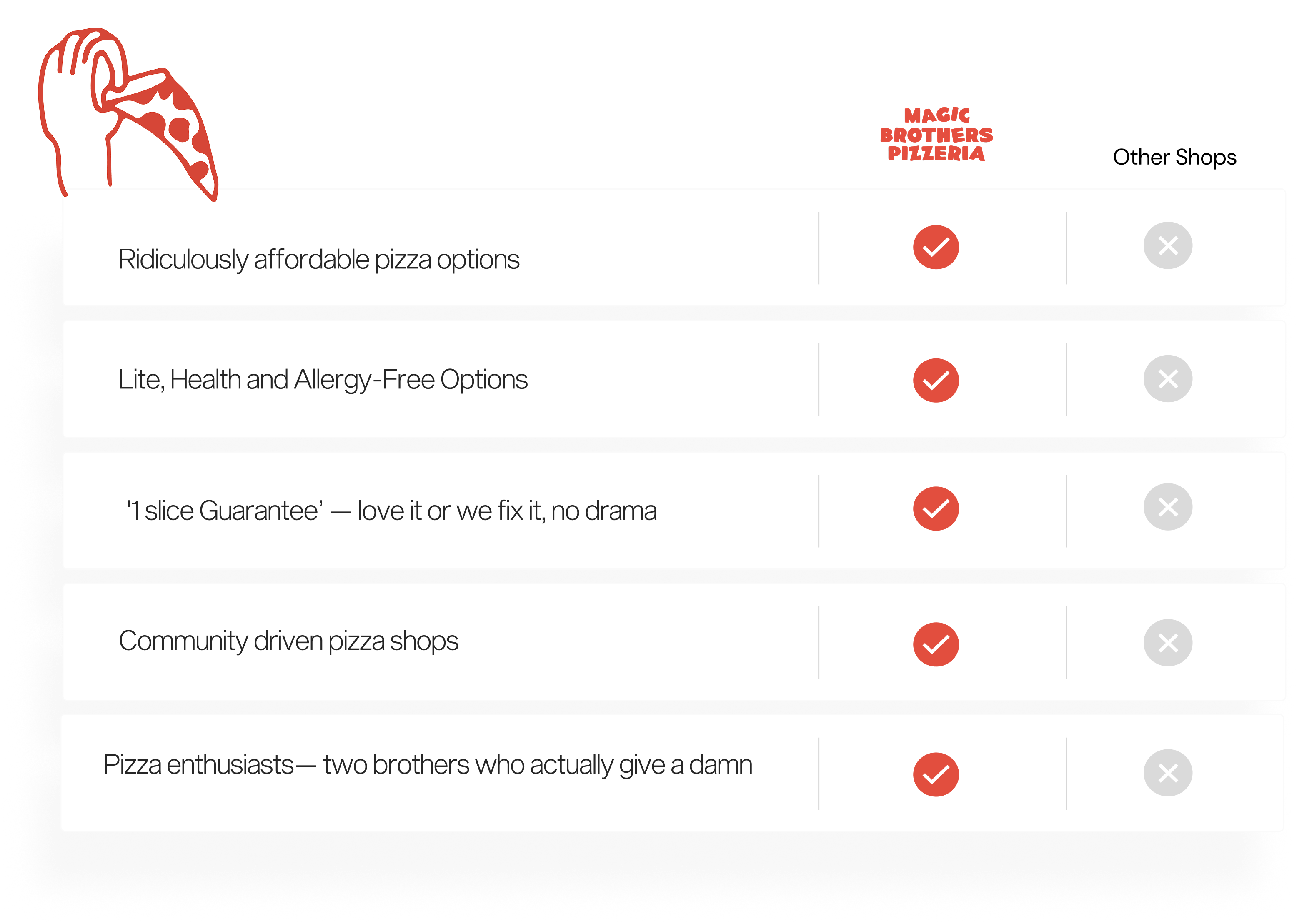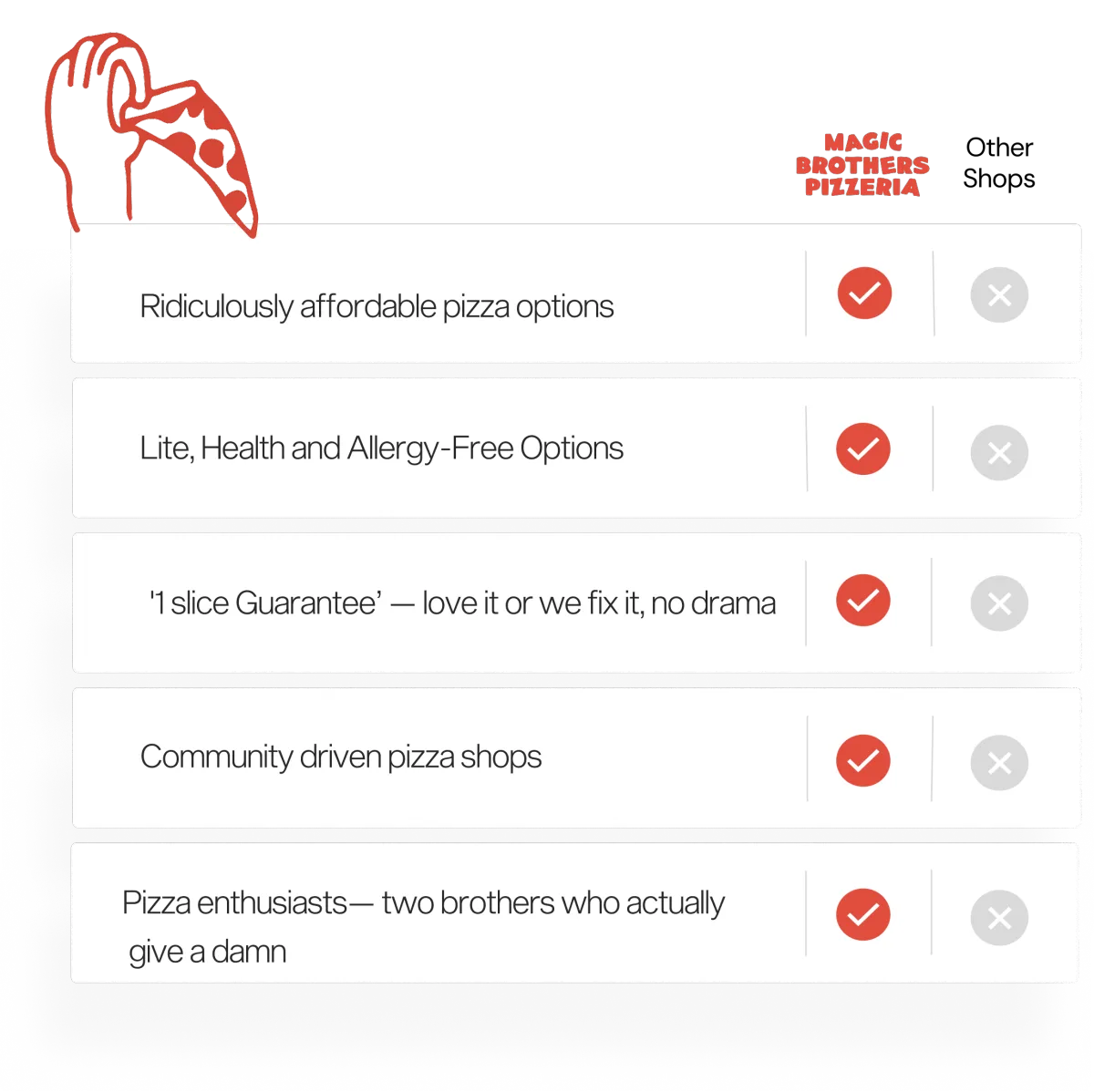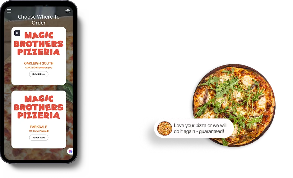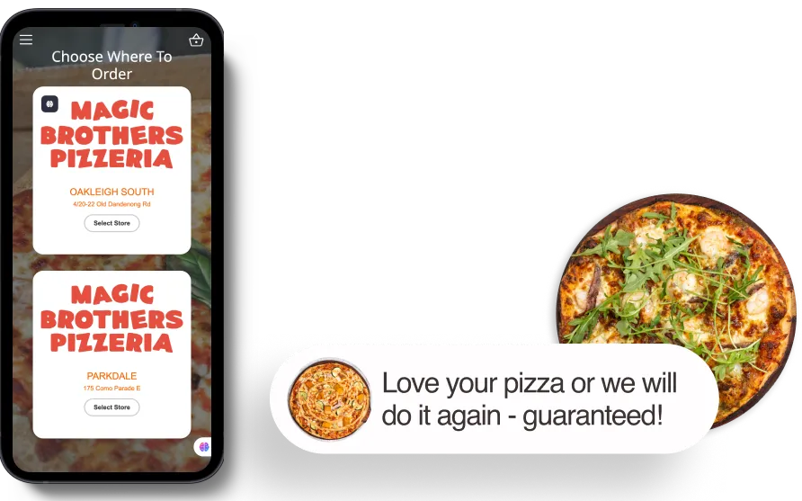 If you don't love your pizza within the first slice, we'll replace it or refund you. No questions asked, no hassle, just great pizza or your money back.