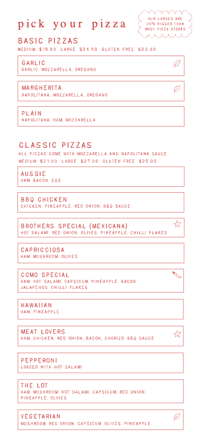 If you don't love your pizza within the first slice, we'll replace it or refund you. No questions asked, no hassle, just great pizza or your money back.